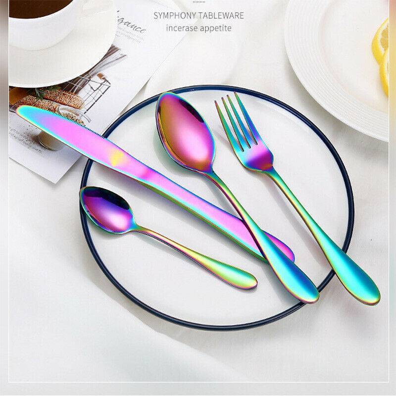 24 Pcs Deluxe Stainless Steel Knife Fork Spoon Teaspoon Kitchen Cutlery Set