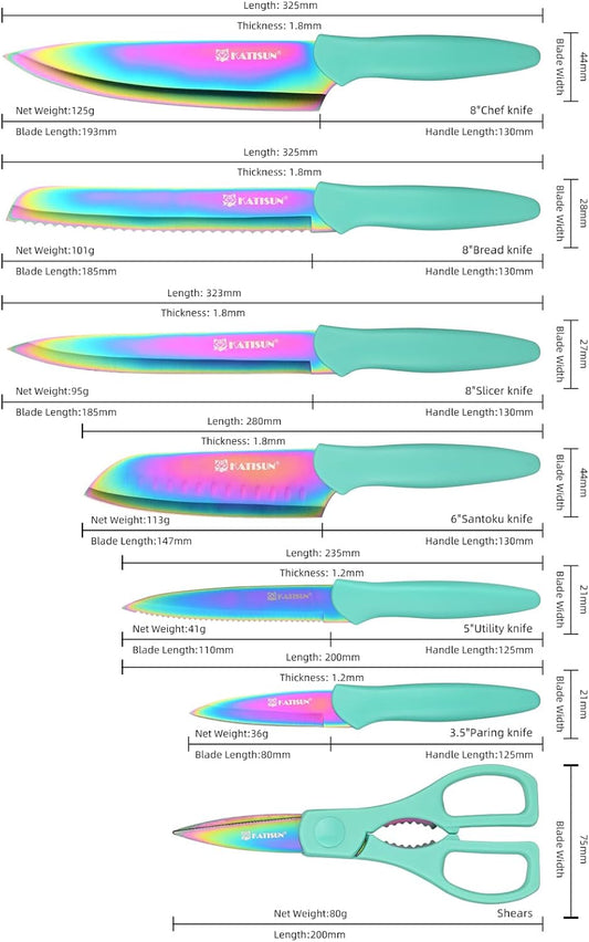 13 Piece Blue Non-Stick Stainless Steel Boxed Knives Set