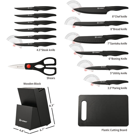 16 Pieces Carbon Steel Kitchen Knife Block Set with Cutting Board, Inner Sharpener, and 6 Steak Knives, Dishwasher Safe