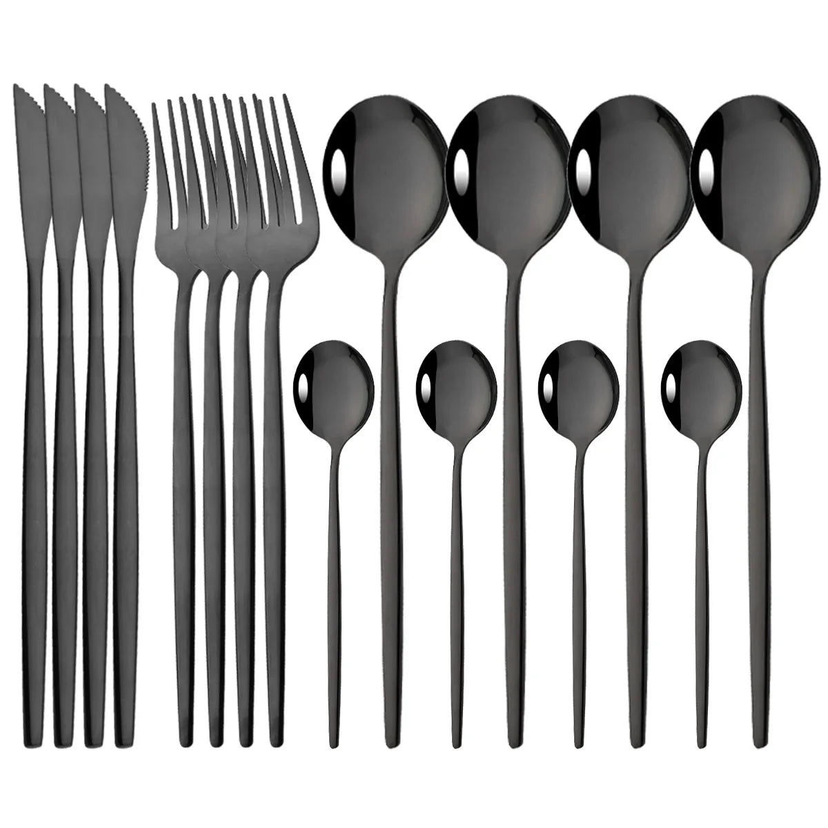 16pcs Pink Gold Dinnerware Tableware Set Mirror Stainless Steel Cutlery Kitchen Knife Fork Spoon Restaurant Wedding Flatware Set