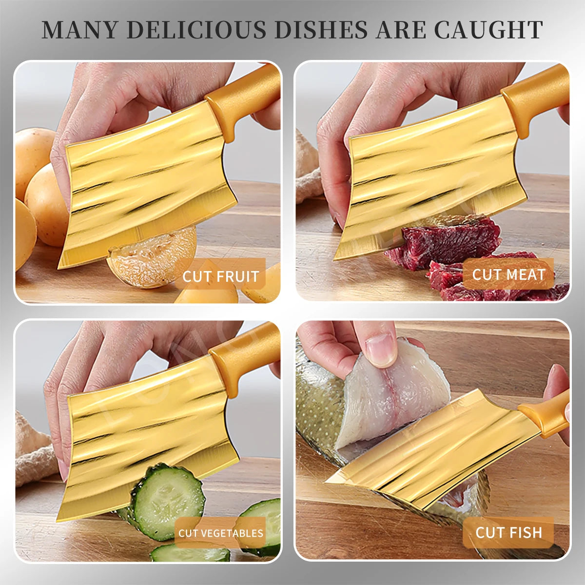 Dazzling Golden Kitchen Knives Stainless Steel Chef Knife Rainbow Fruit Vegetable Chopping Knife Fish Boning Knife