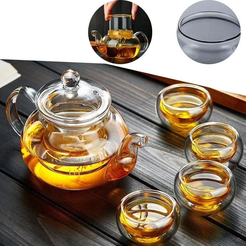 Glass Teapot with Infuser Set Teaware Kitchen Dining Bar Home Tea Kettle Glass Drinkware Samovar Kettle Maker Infusers Jug Tool