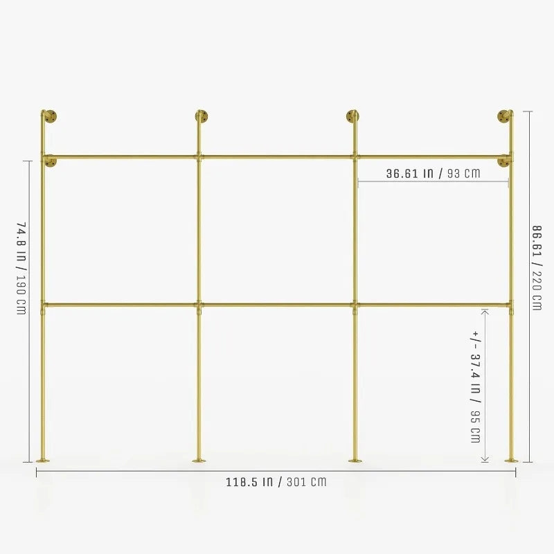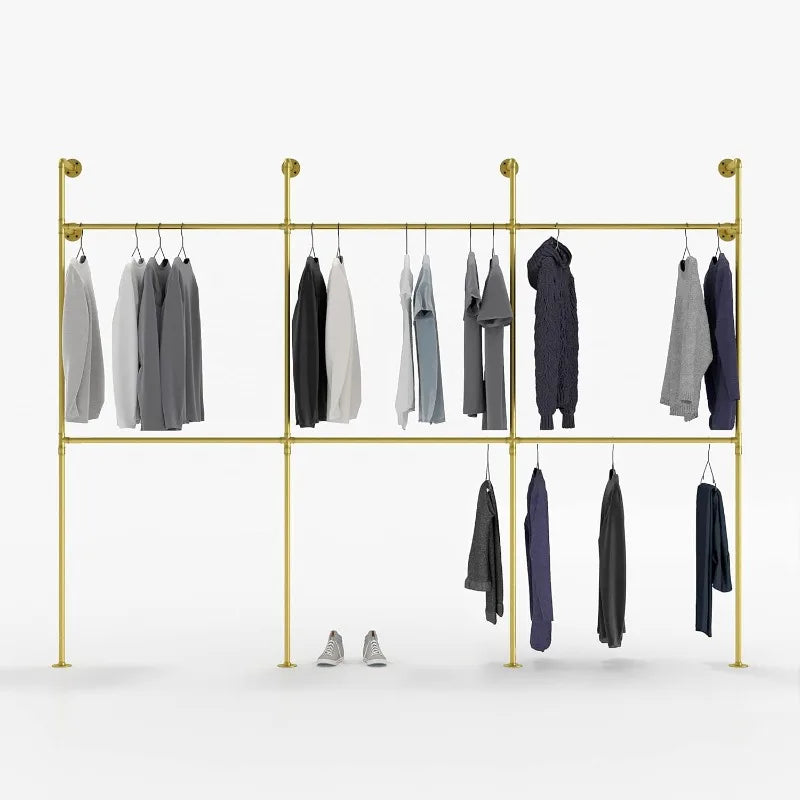 Industrial Pipe Clothing Rack - KIM III Double - clothes rack for wardrobe, bedroom and as walk-in closet system.