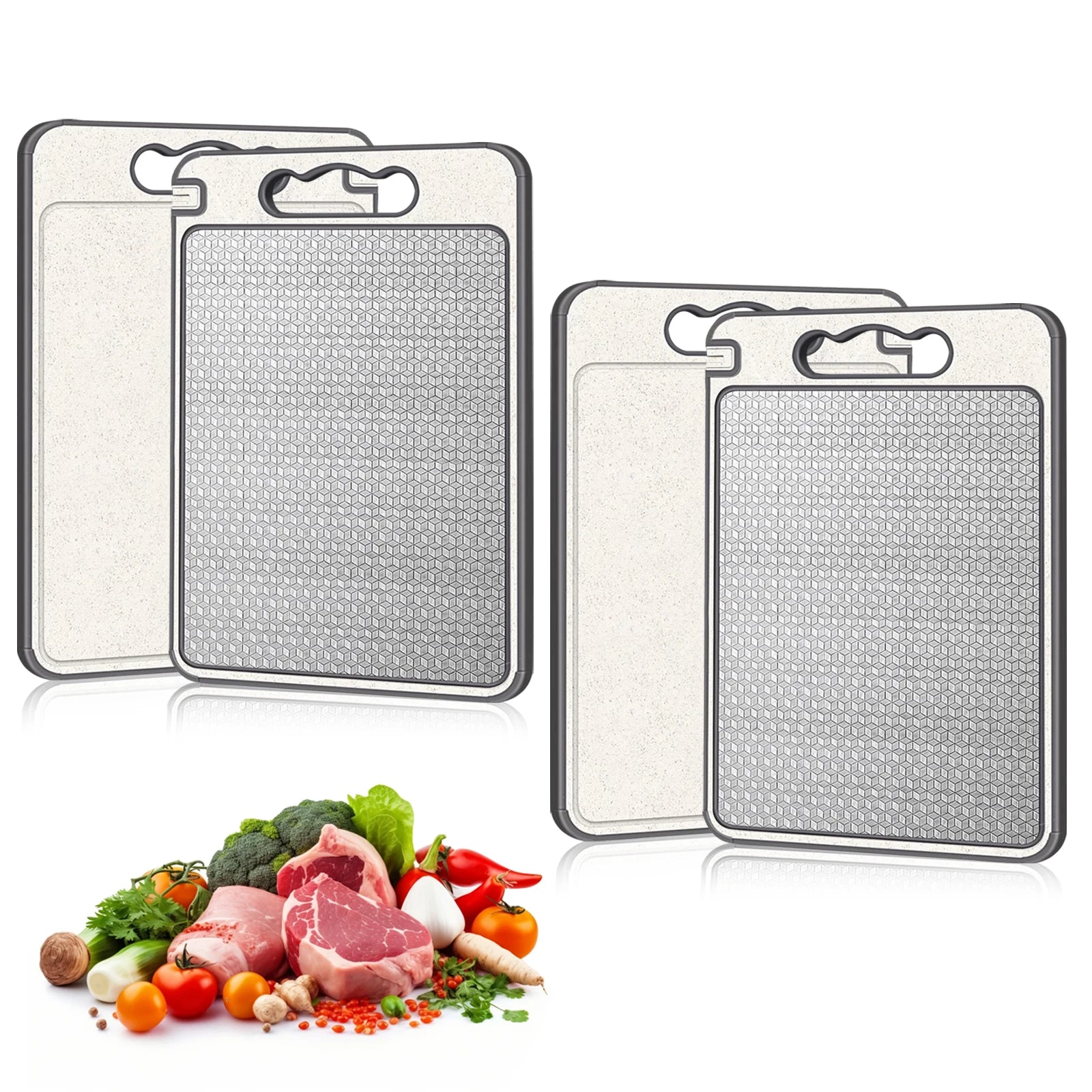 Stainless Steel Cutting Board Set, Double Sided Kitchen Chopping Boards, Titanium-Finish, Dishwasher Safe, Meat and Veggies